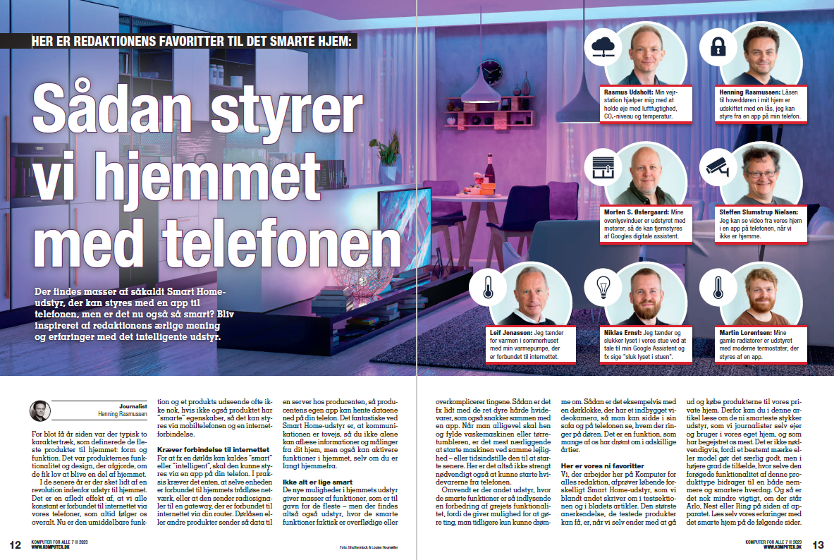 Smart Home Sådan styrer vi hjemmet med telefonen Der findes masser af såkaldt Smart Homeudstyr, der kan styres med en app til telefonen, men er det nu også så smart? Bliv inspireret af redaktionens ærlige mening og erfaringer med det intelligente udstyr.
