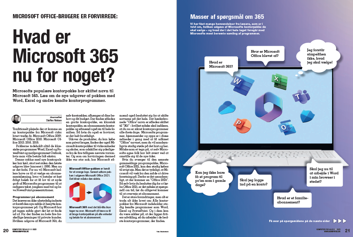 Office Hvad er Microsoft 365 nu for noget? Microsofts populære kontorpakke har skiftet navn til Microsoft 365. Læs om de nye udgaver af pakken med Word, Excel og andre kendte kontorprogrammer.