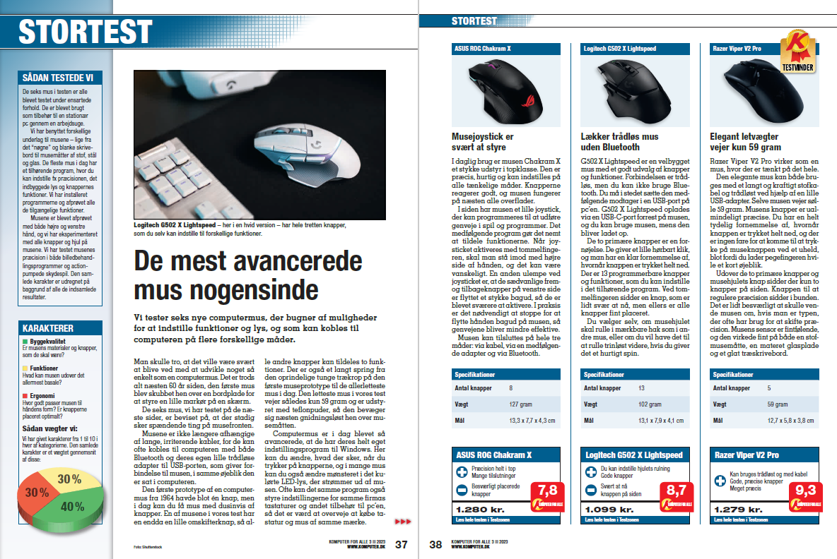 Mus De mest avancerede mus nogensinde Vi tester seks nye computermus, der bugner af muligheder for at indstille funktioner og lys, og som kan kobles til computeren på flere forskellige måder.