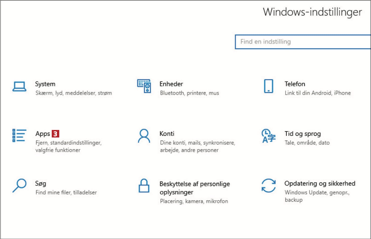 Klik på kategorien Apps 3 i Windows’ store oversigt over indstillinger.