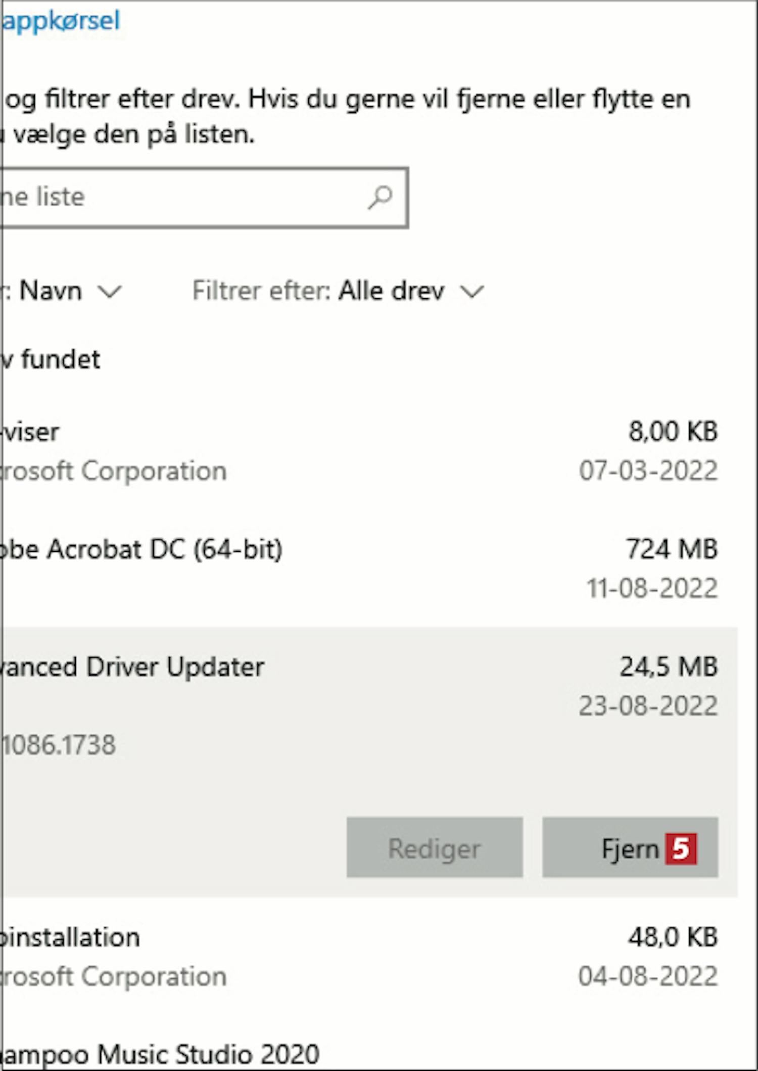Det sker ofte, at man får et ekstra program “med i købet”, når man henter et fint program fra nettet. I dette tilfælde har du fået et skidt program, for Advanced Driver Updater har ingen gode kvaliteter og forsøger at få dig til at købe noget, du ikke har brug for. Heldigvis kan det fjernes på helt normalt vis fra Windows – og der er ingen risiko for, at det påvirker det program, du er glad for. Her viser vi, hvordan du fjerner et program fra pc’en.