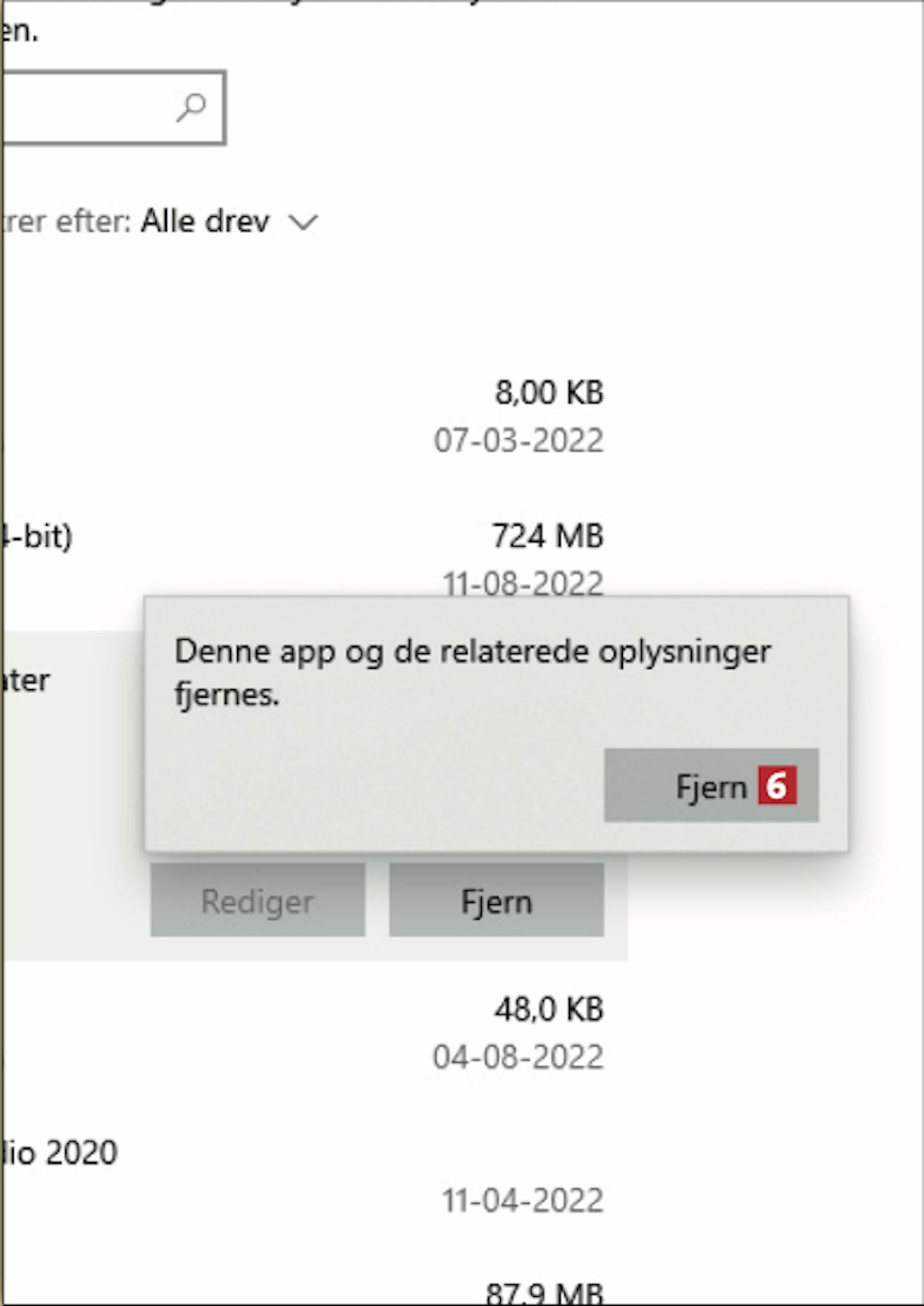 Klik på Fjern igen 6 , og følg den efterfølgende guide til at afinstallere programmet, som så ikke længere vil genere dig.