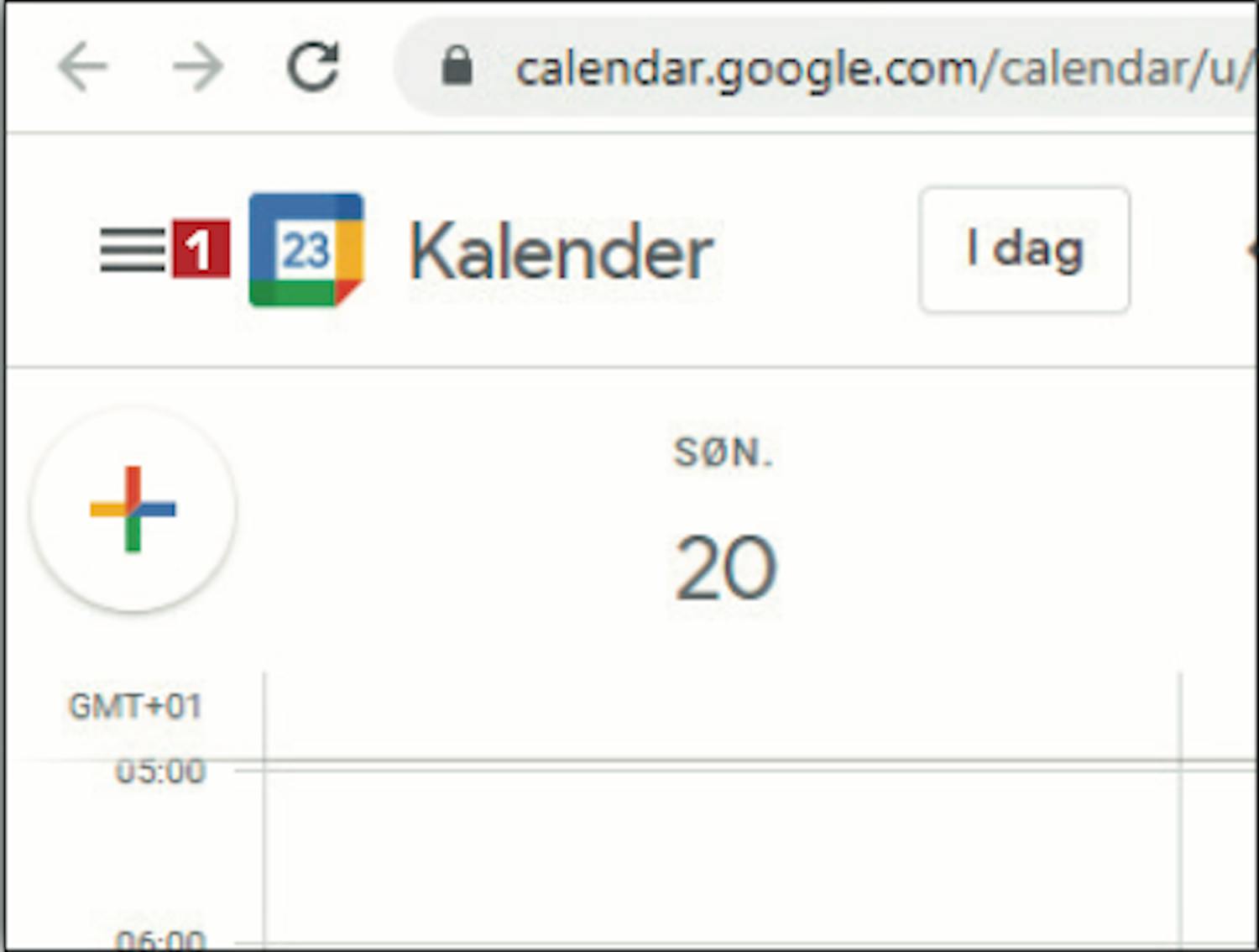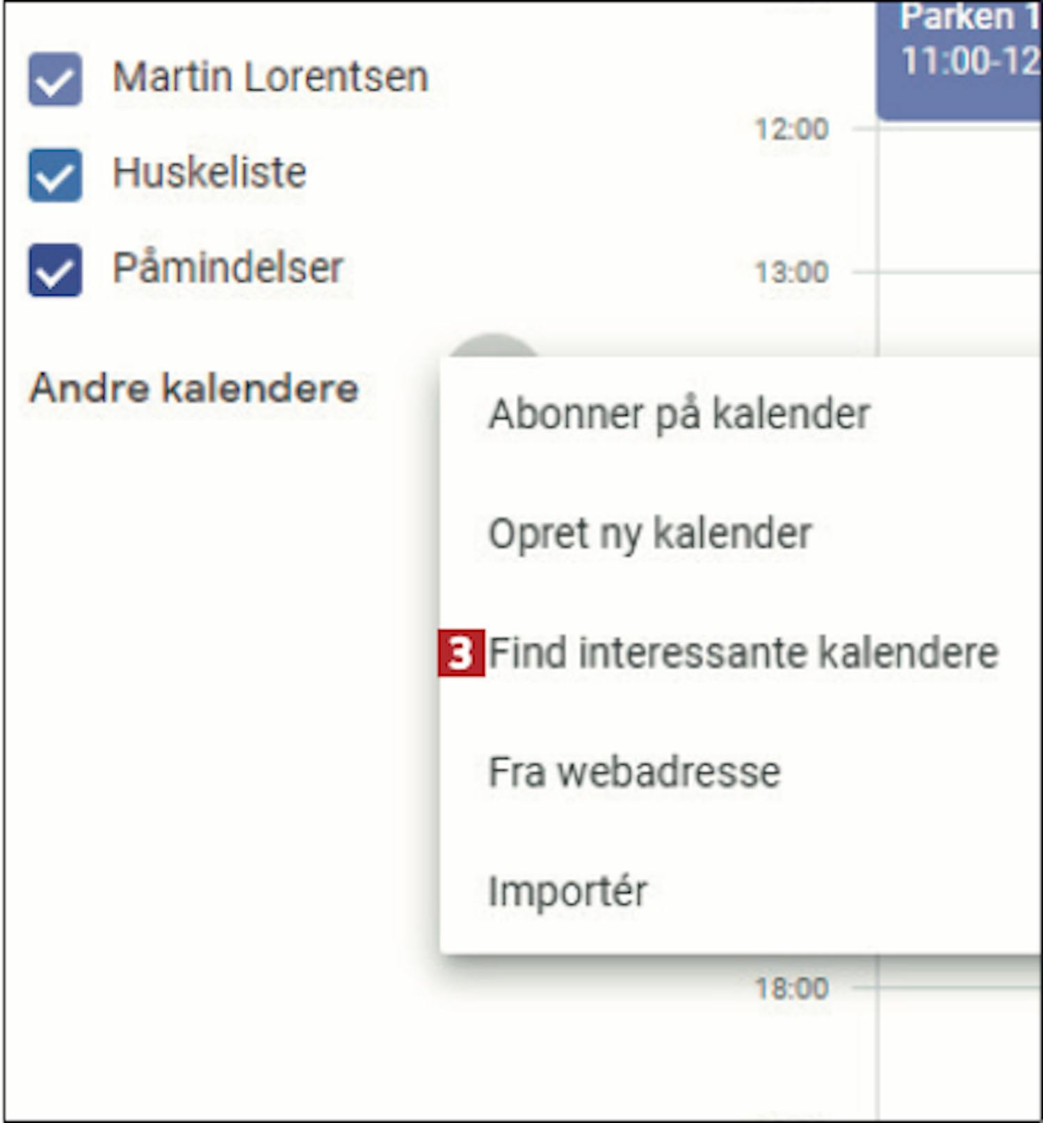 Åbn Google Kalender via linket. Klik på stregerne 1 .
