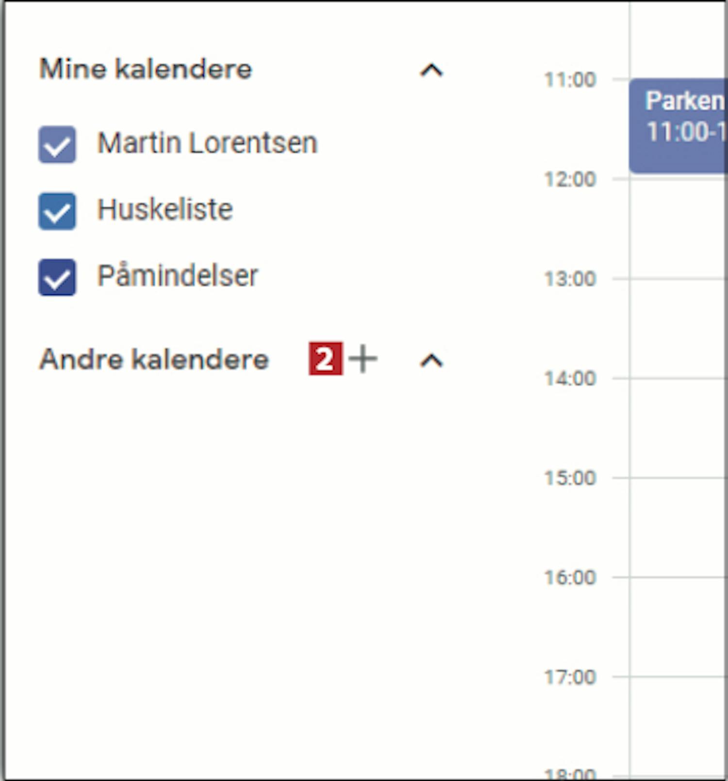 Klik nu på +-ikonet ud for Andre kalendere 2 .