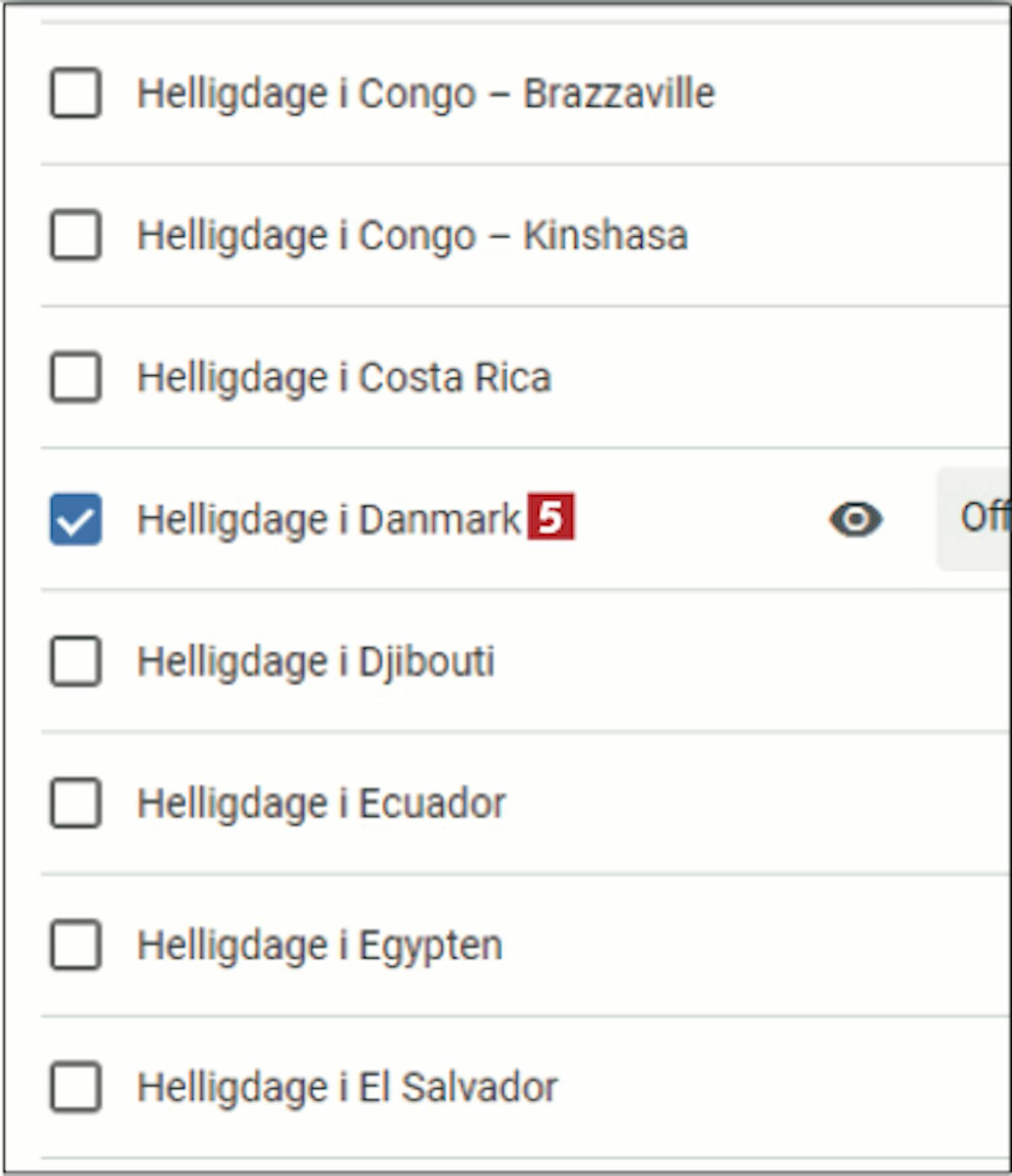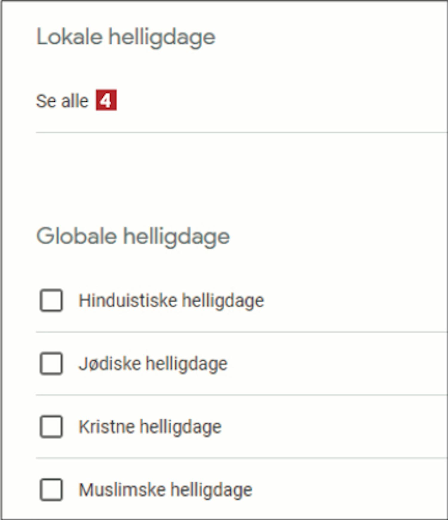 Rul ned til Helligdage i Danmark, og sæt flueben her 5 . Så kan du se de danske helligdage i Google-kalenderen.