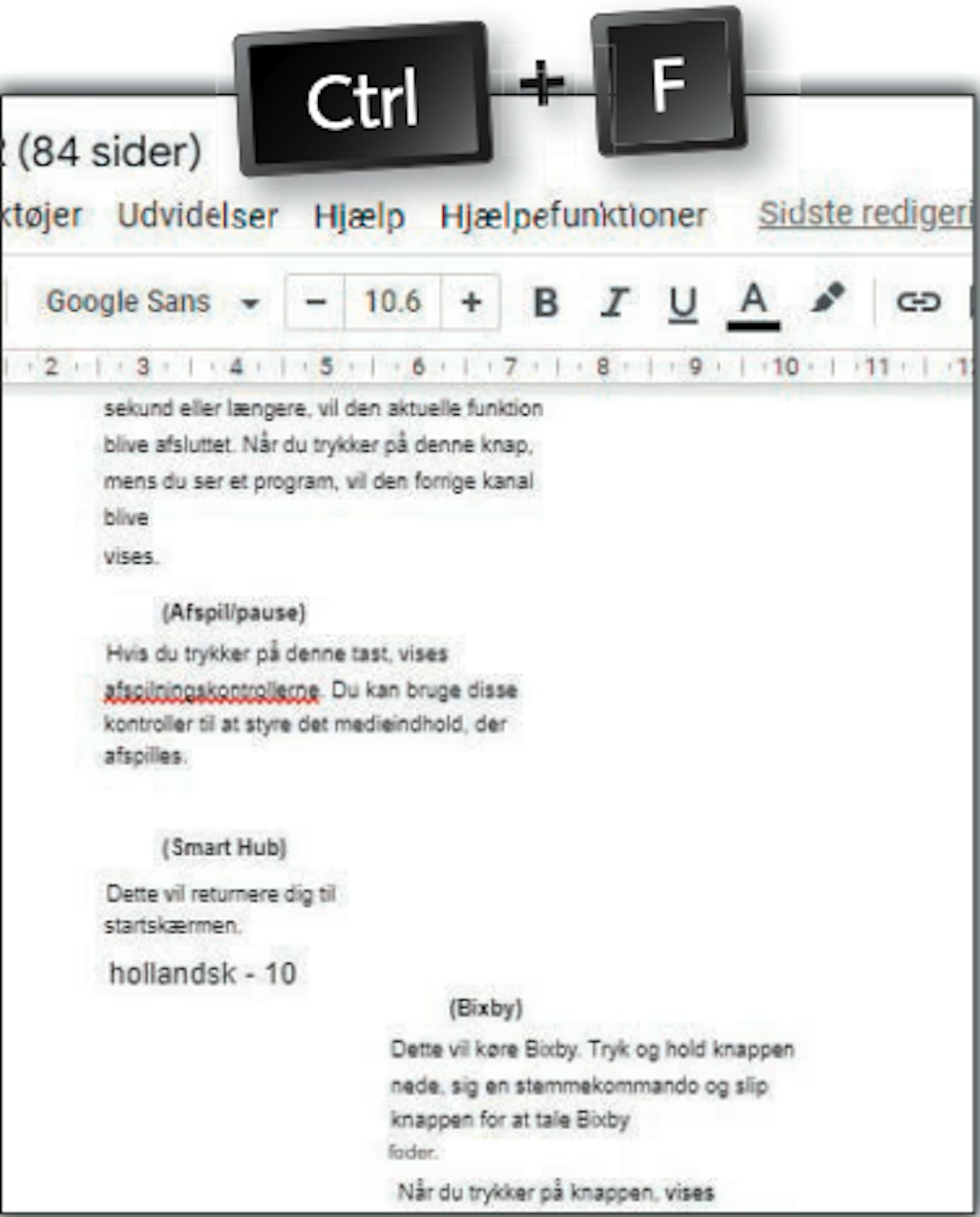 Nu kan du redigere PDF’ens tekst og søge i den. For at søge efter et ord skal du trykke på Ctrl og F på dit tastatur og indtaste ordet.