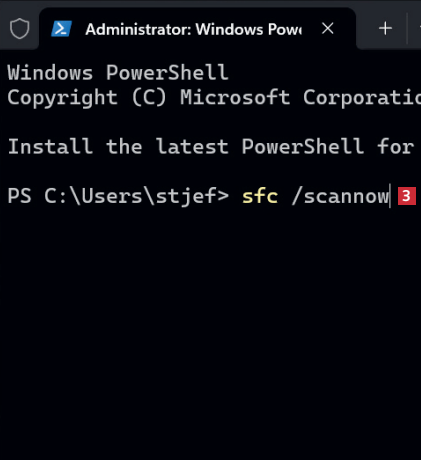 Skriv sfc /scannow 3 (bemærk mellemrummet før skråstregen). Tast Enter. Vent til scanningen slutter.