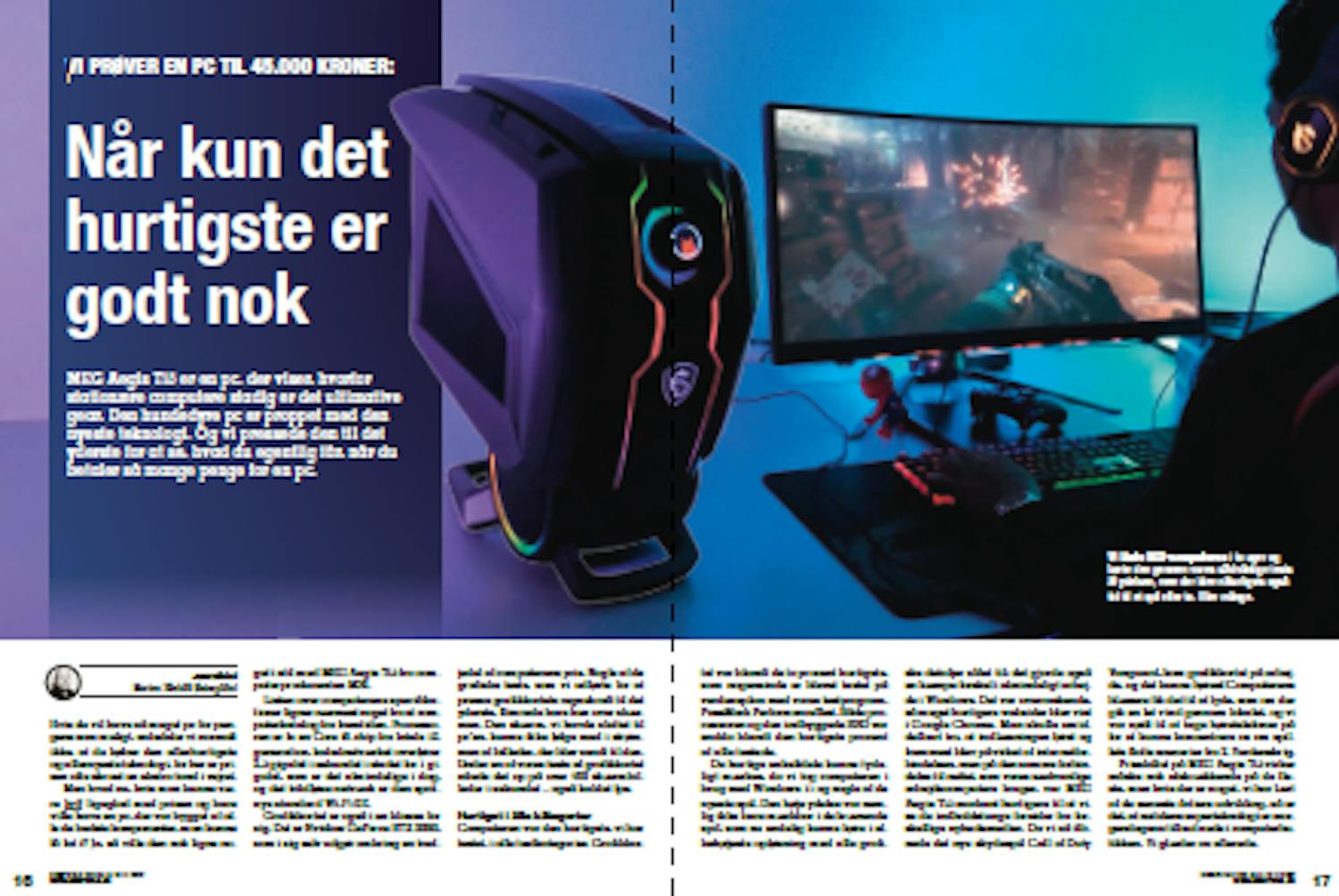 Man skulle umiddelbart tro, at indlæsningen først og fremmest blev påvirket af internetforbindelsen, men på den samme forbindelse til nettet, som vores sædvanlige arbejdscomputere bruger, var MEG Aegis Ti5 markant hurtigere til at vise de indholdstunge forsider fra forskellige nyhedsmedier. Da vi så åbnede det nye skydespil Call of Duty Vanguard, kom grafikkortet på arbejde, og det kunne høres! Computerens blæsere fik det til at lyde, som om der gik en let vind gennem lokalet, og vi var nødt til at tage høretelefoner på for at kunne koncentrere os om spillets flotte scenerier fra 2. Verdenskrig.