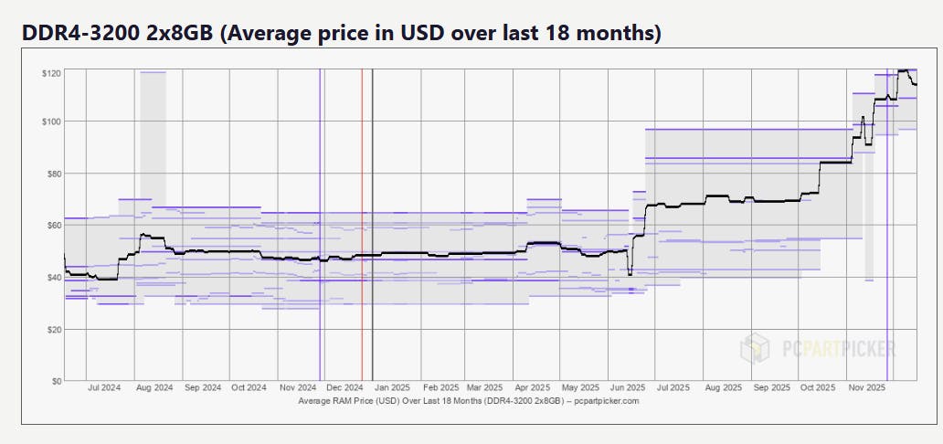 På hjemmesiden pcpartspicker.com kan du selv få et overblik over de tidligere og aktuelle priser på forskellige komponenter til computere.