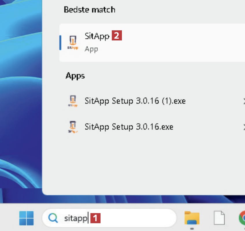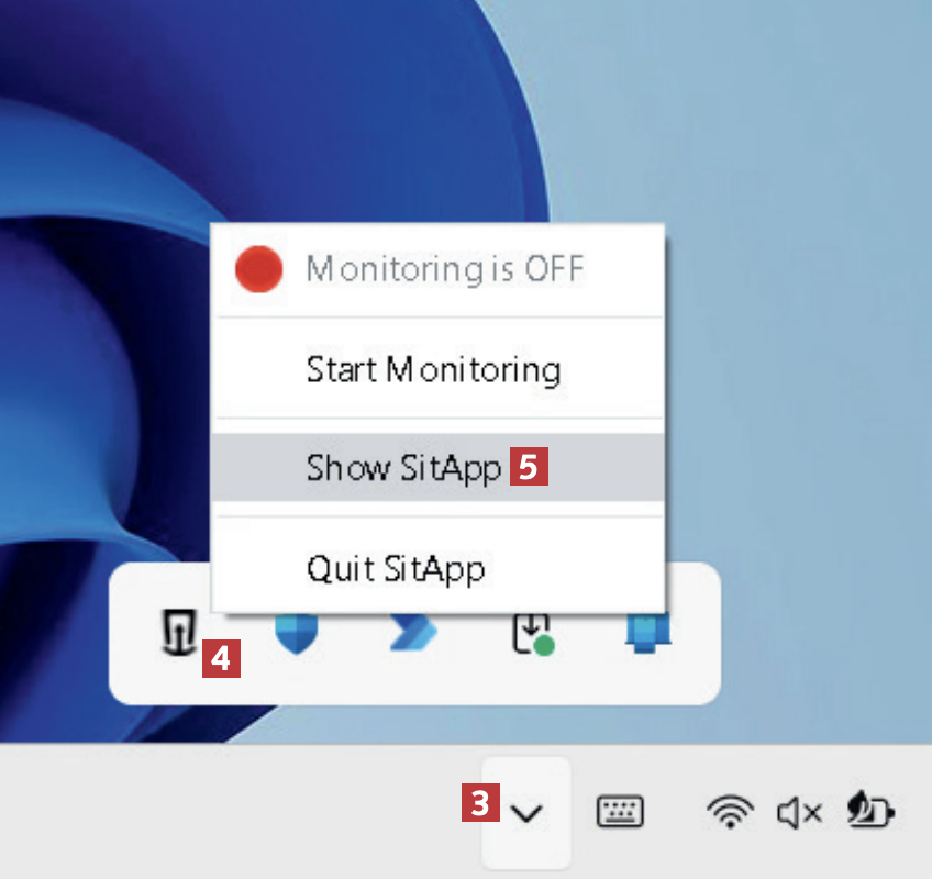 Hvis ikke programvinduet åbner af sig selv, klikker du på pilen 3. Højreklik nu på ikonet 4, og vælg derefter Show SitApp 5.