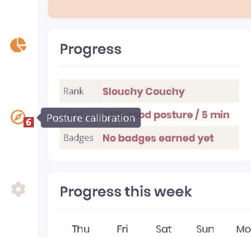 Klik på ikonet 6 for Posture calibration til venstre i vinduet. Det er muligt, at opsætningsvinduet åbner af sig selv, så du kan springe dette trin over.