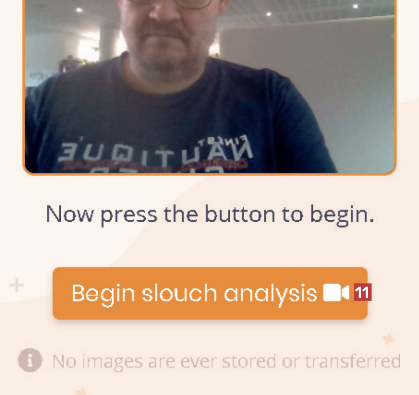 Programmet tæller nu ned fra fem 10, mens det tager billeder af din gode siddestilling. Ryk gerne lidt rundt i stolen undervejs, så SitApp lærer flere gode stillinger at kende.