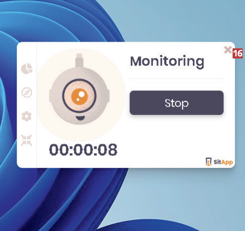 Dashboard er programmets hovedvindue, hvor du blandt andet kan se målinger over, hvor godt du sidder ved pc’en. Klik på Start 15.