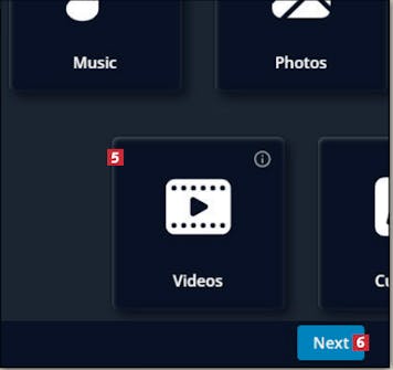 Rul ned i bunden af siden. Du kan vælge kun at medtage bestemte filtyper 5 – ellers klik blot videre i guiden på Next 6 .