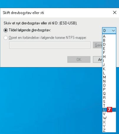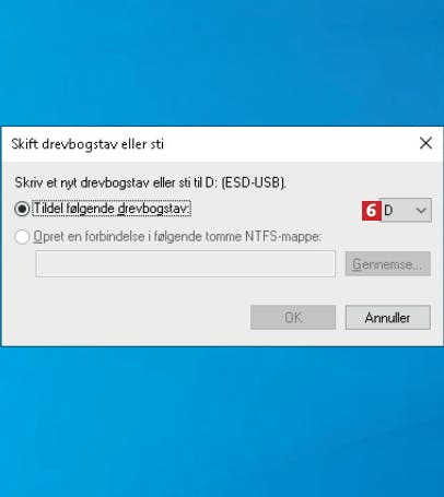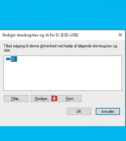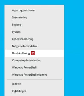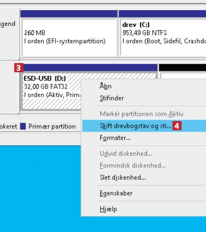 Diskhåndtering i Windows er åbnet. Højreklik på din harddisk 3, og vælg Skift drevbogstav og sti… 4.