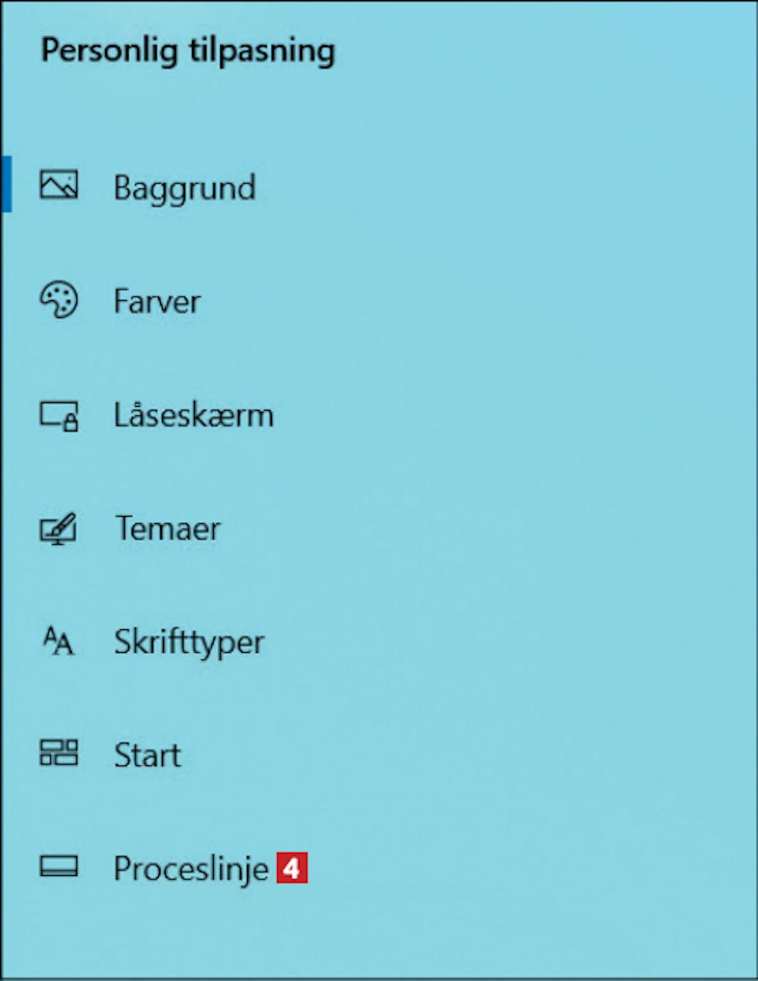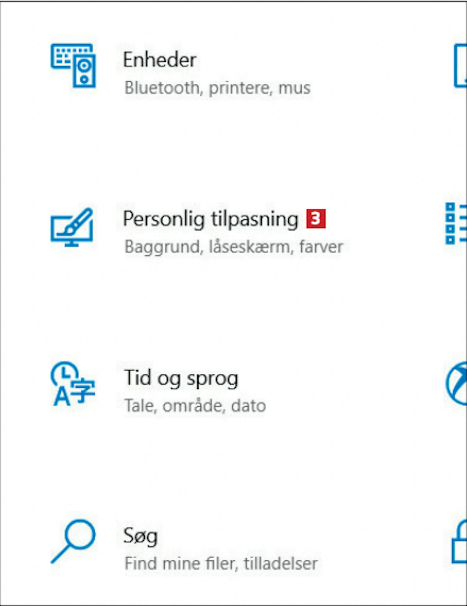 Klik på kategorien Personlig tilpasning 3 i menuen.