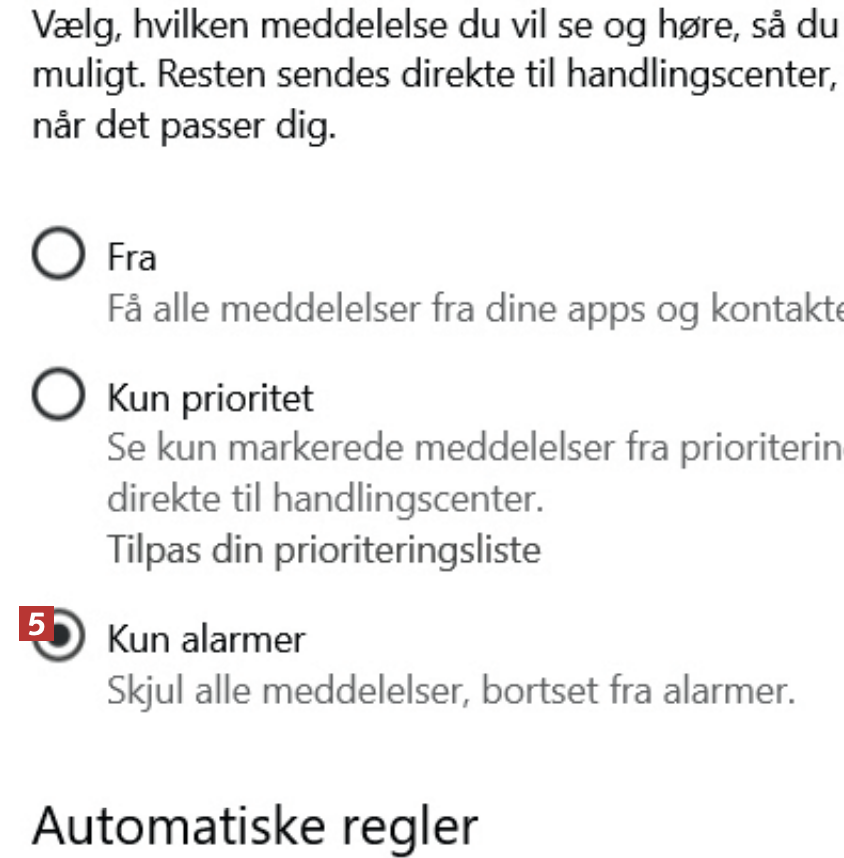 Så sætter du Fokushjælp til Kun alarmer 5. Dermed er det kun alvorlige problemer, der får lov at forstyrre dig.