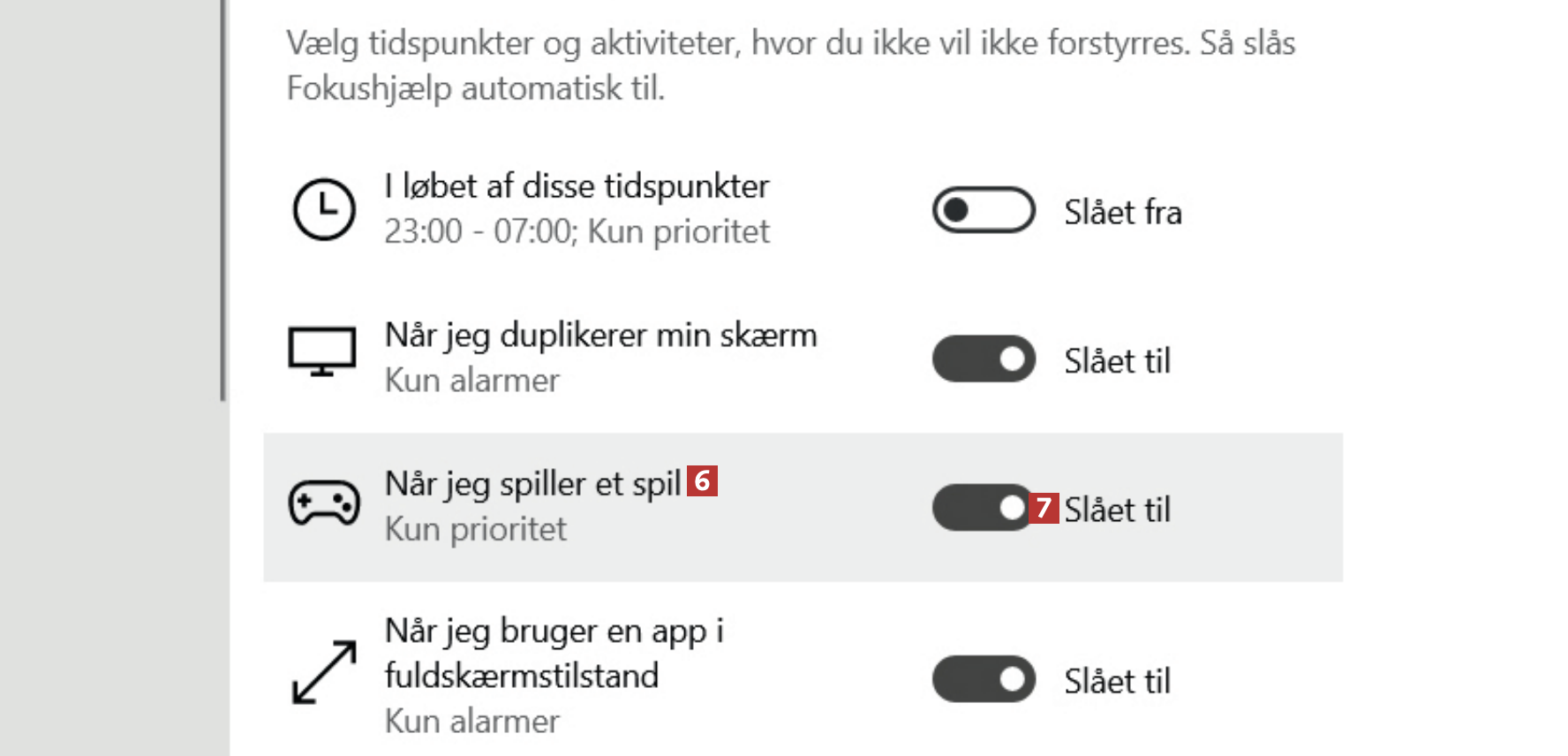 Når jeg spiller spil i fuldskærm i Windows 10, er jeg ofte blevet forstyrret af, at en mailnotifikation er dukket op på skærmen. Kan jeg mon undgå den slags uønskede afbrydelser af mine spil?