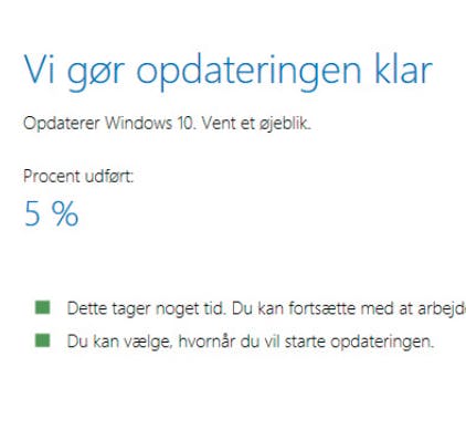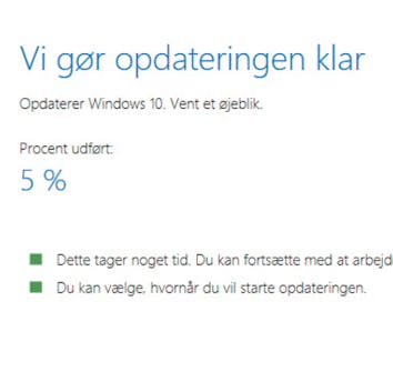 Nu går selve installationen af opdateringen i gang, og du skal blot lade pc’en arbejde i fred og ro.