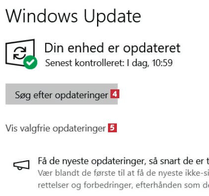 Klik først på Søg efter opdateringer 4 . Det opdaterer de valgfrie opdateringer, som du ser med Vis valgfrie opdateringer 5.