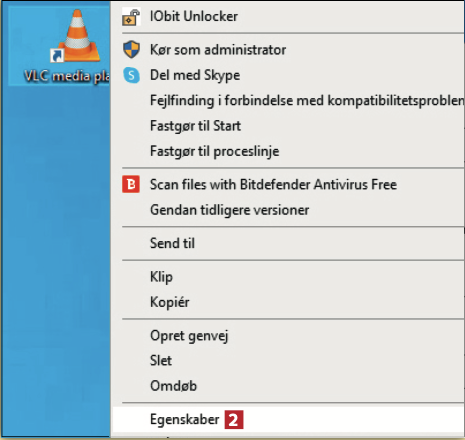 Start med at højreklikke på genvejsikonet 1 for det