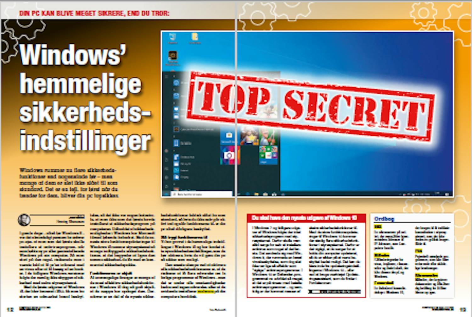 Derudover er en del af de nyeste sikkerhedsfunktioner faktisk slået fra som standard, så hvis du ikke selv går aktivt ind og slår funktionerne til, er din pc altså dårligere beskyttet. ## Slå trygt funktionerne til Vi har gravet i de hemmelige indstillinger i Windows 10 og har fundet otte nye sikkerhedsindstillinger, som du bør aktivere, hvis du vil gøre din pc så sikker som muligt.