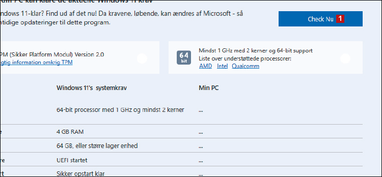 Windows 11 kompatibilitetstjek analyserer hurtigt din hardware og rapporterer mulige problemer.