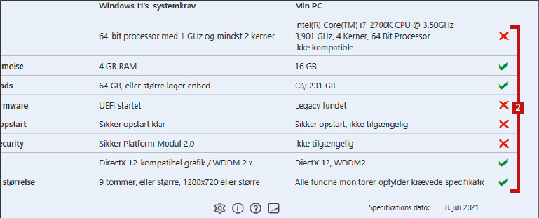 Hvis din pc ikke lever op til kravene i nogle af disse kategorier, vil du få besked - også om mulige rettelser.