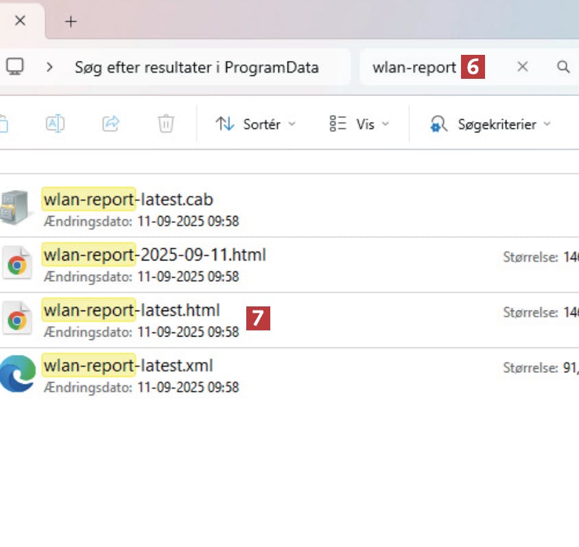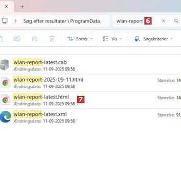 Åbn Stifinder på din pc, og skriv wlan-report 6 i søgefeltet. Vent et øjeblik. Dobbeltklik på filen wlan-report-latest.html 7.