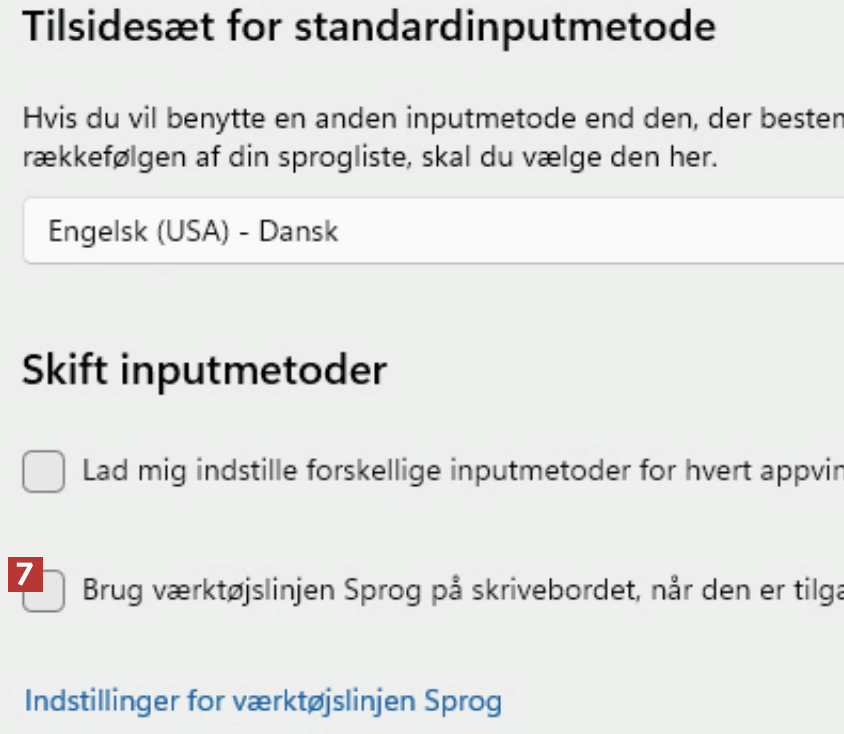 Efter en nylig velgennemført opgradering fra Windows 10 til Windows 11 sidder jeg med ét stærkt irriterende problem. Den lille menu, hvor man skifter sprog, har løsrevet sig og har lagt sig på Skrivebordet. Hvordan fjerner jeg den?