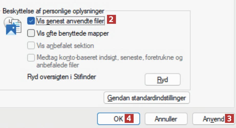 Normalt i Windows 11’s Stifinder vises en liste med de filer, jeg har brugt senest. Men nu får jeg en fejlbesked i Stifinder. Hvad gør jeg?