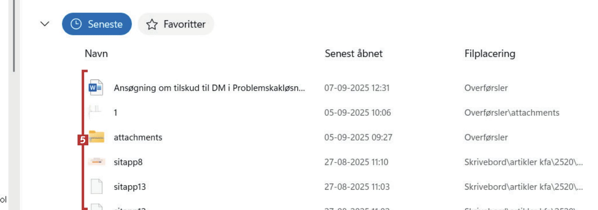 Her er problemet. Der bliver ikke vist en oversigt over seneste filer i Stifinder-vinduet. Klik derfor på linket 1.