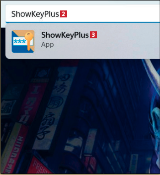 Skriv ShowKeyPlus 2, og klik på søgeresultatet 3 .