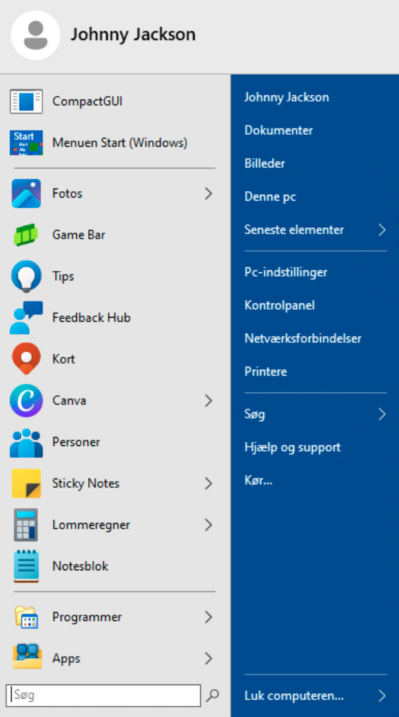 Du kan hurtigt komme ind til Kontrolpanel og til alle de øvrige Windows-indstillinger.
