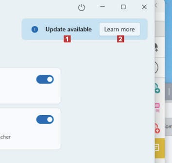 Hvis du allerede har programmet installeret på din pc, skal du sikre dig, at programmet er opdateret. Kan du se feltet Update available 1 skal du klikke på Learn more 2.
