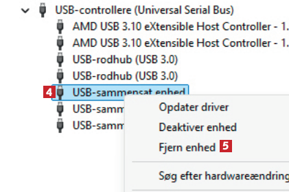 Når jeg tilslutter en USB-nøgle, kan jeg høre, at pc’en arbejder. Men nøglen vises hverken i Stifinder eller i Diskhåndtering. Jeg har læst et råd om at ændre drevbogstav, men det er jo umuligt, når jeg ikke kan se nøglen. Den fungerer fint på andre pc’er. Hvad gør jeg?