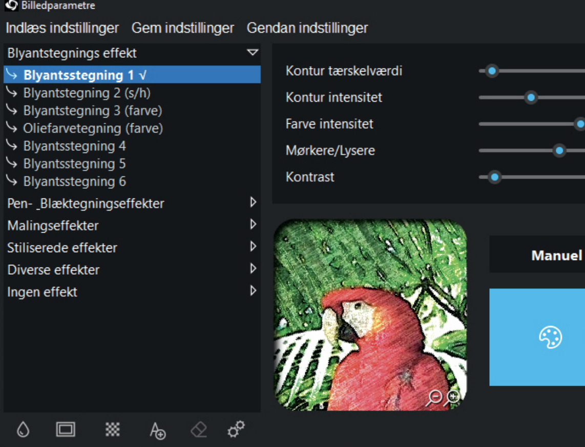Du kan prøve med programmet FotoSketcher, som du kan hente gratis på vores hjemmeside, hvor du også finder en udførlig guide.