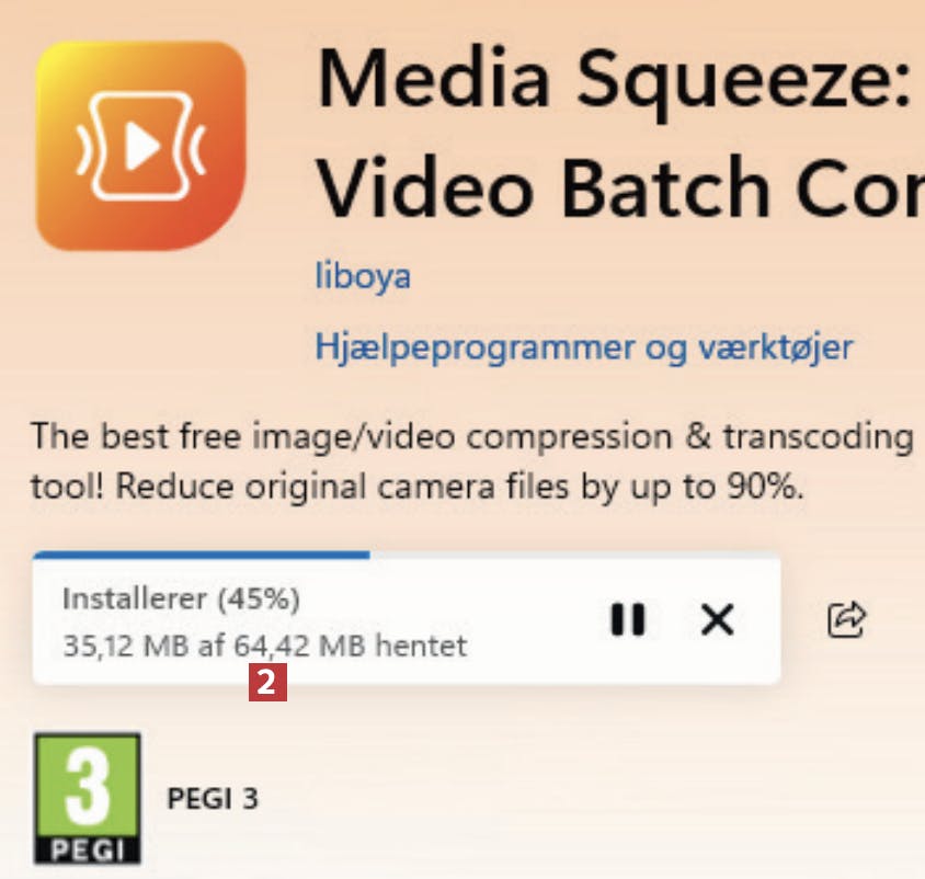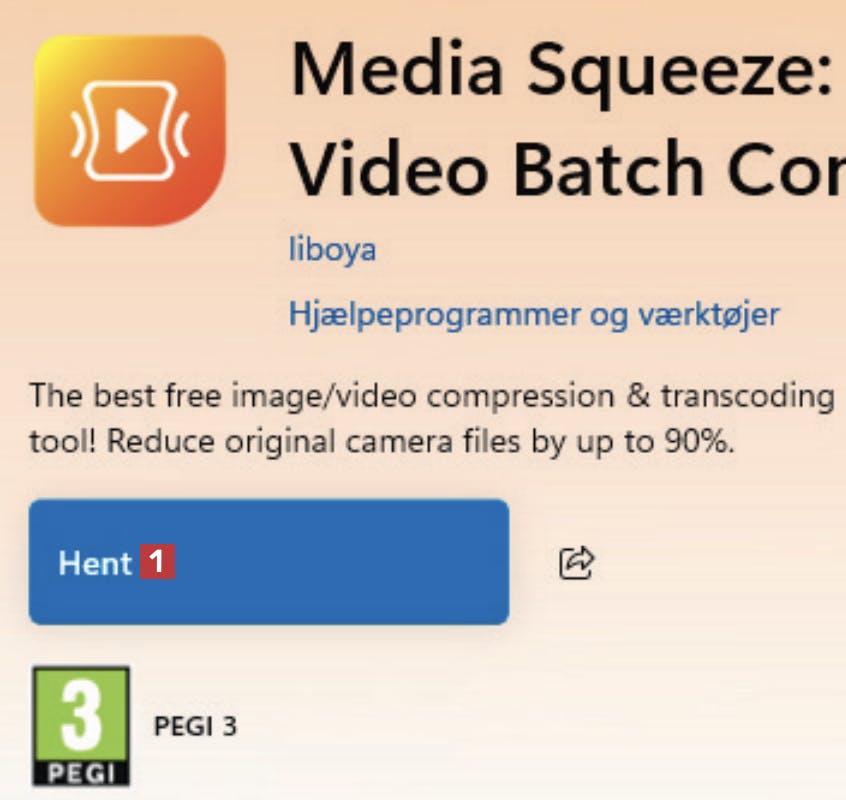 Du skal starte med at hente Media Squeeze på vores hjemmeside. Herefter åbnes Microsoft Store i Windows, hvor installationen gennemføres.