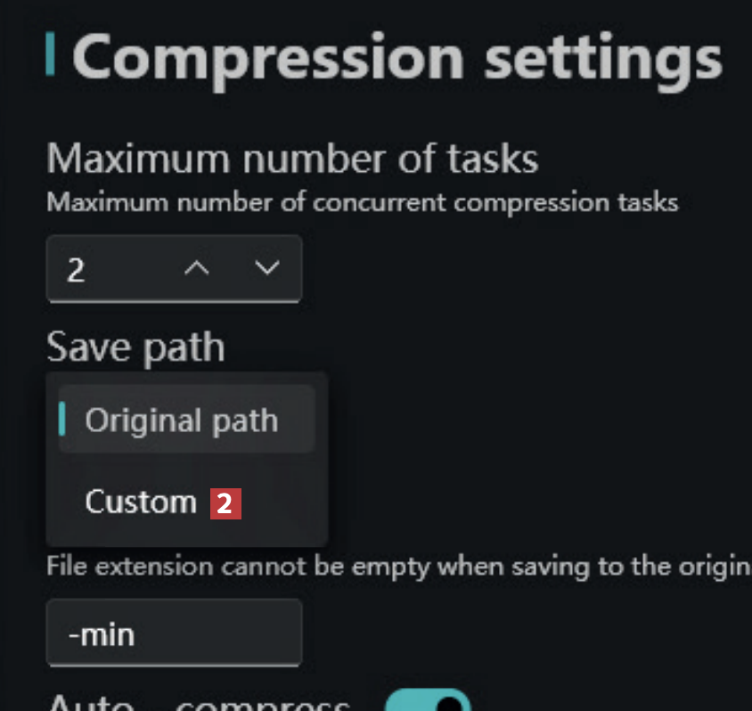 Rul lidt ned i indstillingerne. Jo højere værdi 3 under Compression Quality, desto mere fylder billederne. Du kan også indtaste en størrelse for billedets korteste side 4.