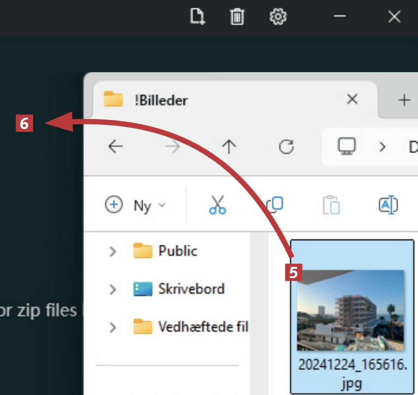 Åbn din mappe med billeder. Du kan nu trække et eller flere billeder fra mappen 5 og direkte over i Media Squeeze 6.
