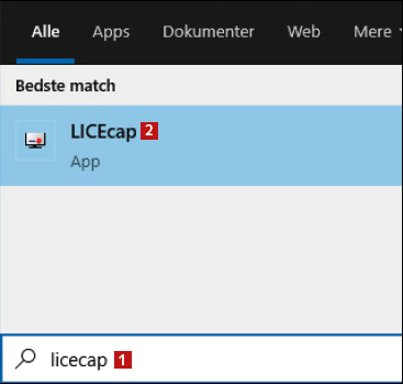 Hent LICEcap i Fordelszonen, og installer programmet. Skriv derefter Licecap i Windows’ søgefelt 1, og klik på LICEcap 2, når det dukker op som søgeresultat.