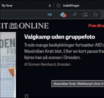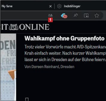 Åbn den hjemmeside, du gerne vil have oversat til dansk. I adressefeltet skal du klikke på oversæt-ikonet 1, som er længst til højre i adressefeltet.