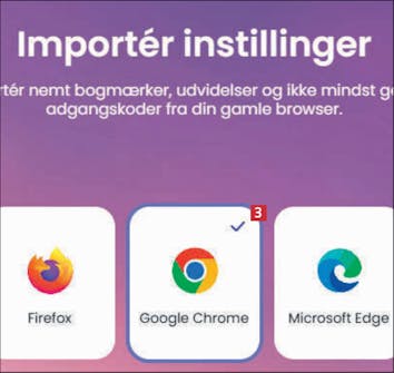 Når du installerer Brave-browseren, kan du vælge at få overført alt data fra den browser, du normalt bruger. Det betyder blandt andet, at dine gamle bogmærker og browsertilføjelser automatisk bliver lagt over i Brave.