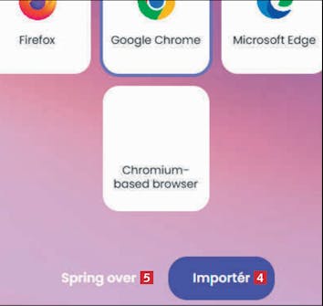 Har du valgt at importere data fra Chrome, skal du vælge den Google-profil 6, du vil importere data fra, hvis du altså har flere profiler. Klik derefter på Importér profiler 7.