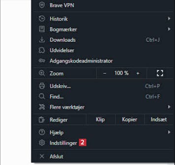 Til at begynde med skal du åbne Brave-browseren. I øverste højre hjørne af browservinduet ser du tre streger. Klik på dem 1.