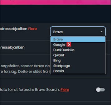 Du kan nemt ændre, hvilken søgemaskine Brave skal bruge, når du søger efter informationer på nettet. Så kan du fx få Google som standard i Brave.