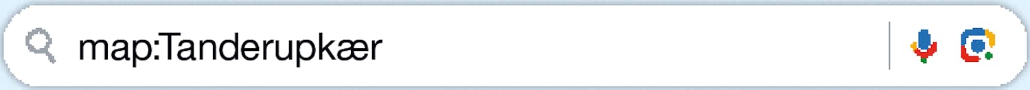 Til sidst giver vi en god genvej til at søge efter steder. Ved at bruge kommandoen “Map:” får du vist det sted, du søger efter på et kort øverst i søgningen.