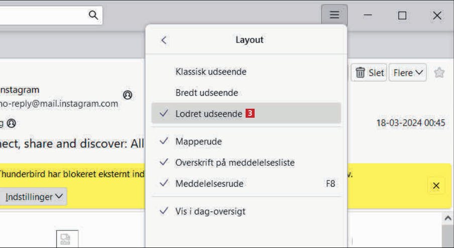 Jeg bruger det fine mailprogram Thunderbird på min computer. Det irriterer mig dog, at en åbnet mail vises nederst i vinduet (altså under indbakken). Det ville være meget bedre, hvis indholdet i mailen kommer op ved siden af indbakken.