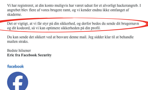 - 3. Mailen beder dig om at udlevere følsomme oplysninger