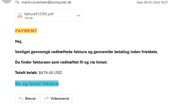 Vær derfor skeptisk, hvis en mail indeholder sprogfejl eller formuleringer, der virker mærkelige.